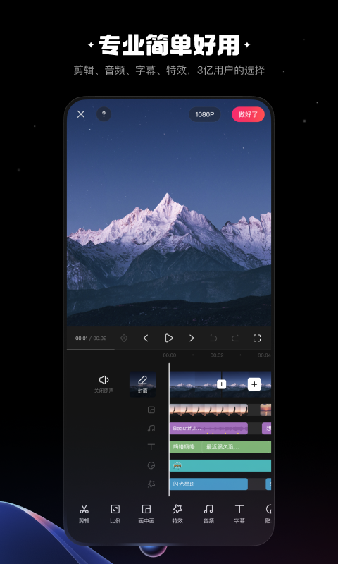快影是一款专注于视频创作与剪辑的移动应用,致力于为用户提供简单高效的视频编辑体验。无论是短视频制作、Vlog剪辑还是日常记录,快影都集成了丰富的剪辑功能和创意素材,帮助用户轻松完成专业级视频输出。该应用支持多轨道剪辑、智能配音、字幕识别、滤镜特效等功能,适合新手和进阶用户使用。